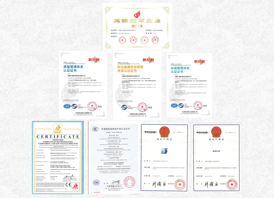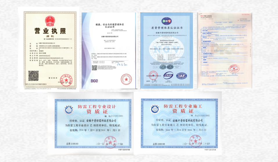 公司使用的產品均通過了北京雷電防護裝置測試中心等國家權威性檢測機構檢測,具有CE、CCC等相關認證,以過硬的工程質量獲得了中國人保的工程質量承保。